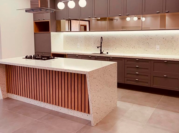 Um dos principais diferenciais da nossa empresa está no acabamento impecável e na variedade de opções oferecidas. Trabalhamos com mármores e granitos de altíssima qualidade, além de materiais industrializados das marcas mais renomadas do mercado. Contamos com uma equipe de profissionais altamente capacitados.